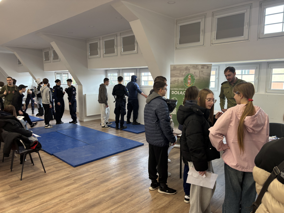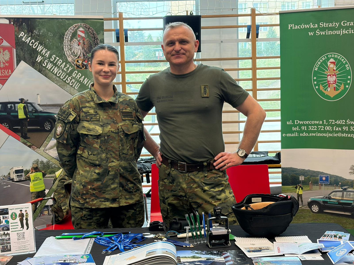 Strażnicy graniczni z Placówek SG w Świnoujściu i Ustce uczestniczyli także w targach edukacyjnych, gdzie informowali o procedurze kwalifikacyjnej oraz etapach naboru. Przedstawili również ofertę edukacyjną Wyższej Szkoły Straży Granicznej w Koszalinie. Stoiska SG cieszyły się dużym zainteresowaniem, a uczestnicy mogli z bliska zapoznać się z wyposażeniem funkcjonariuszy.