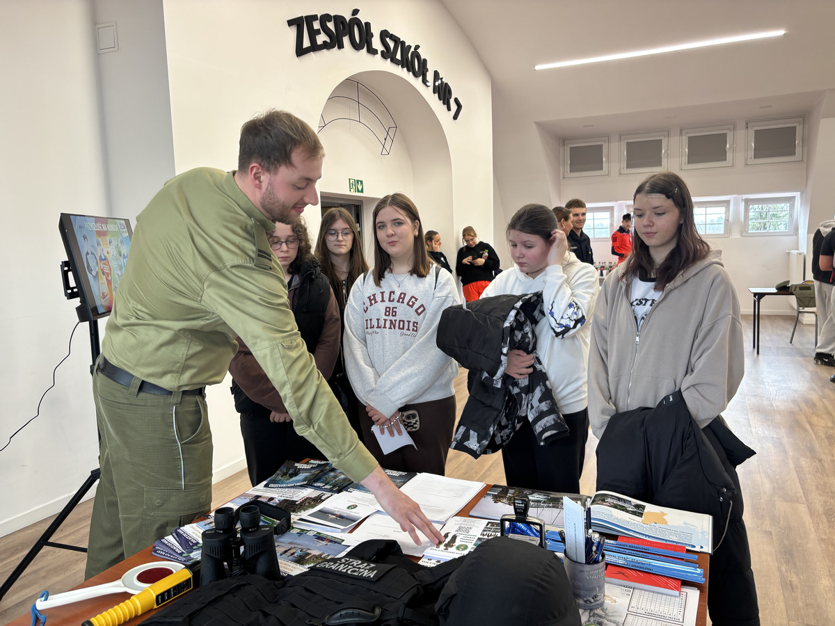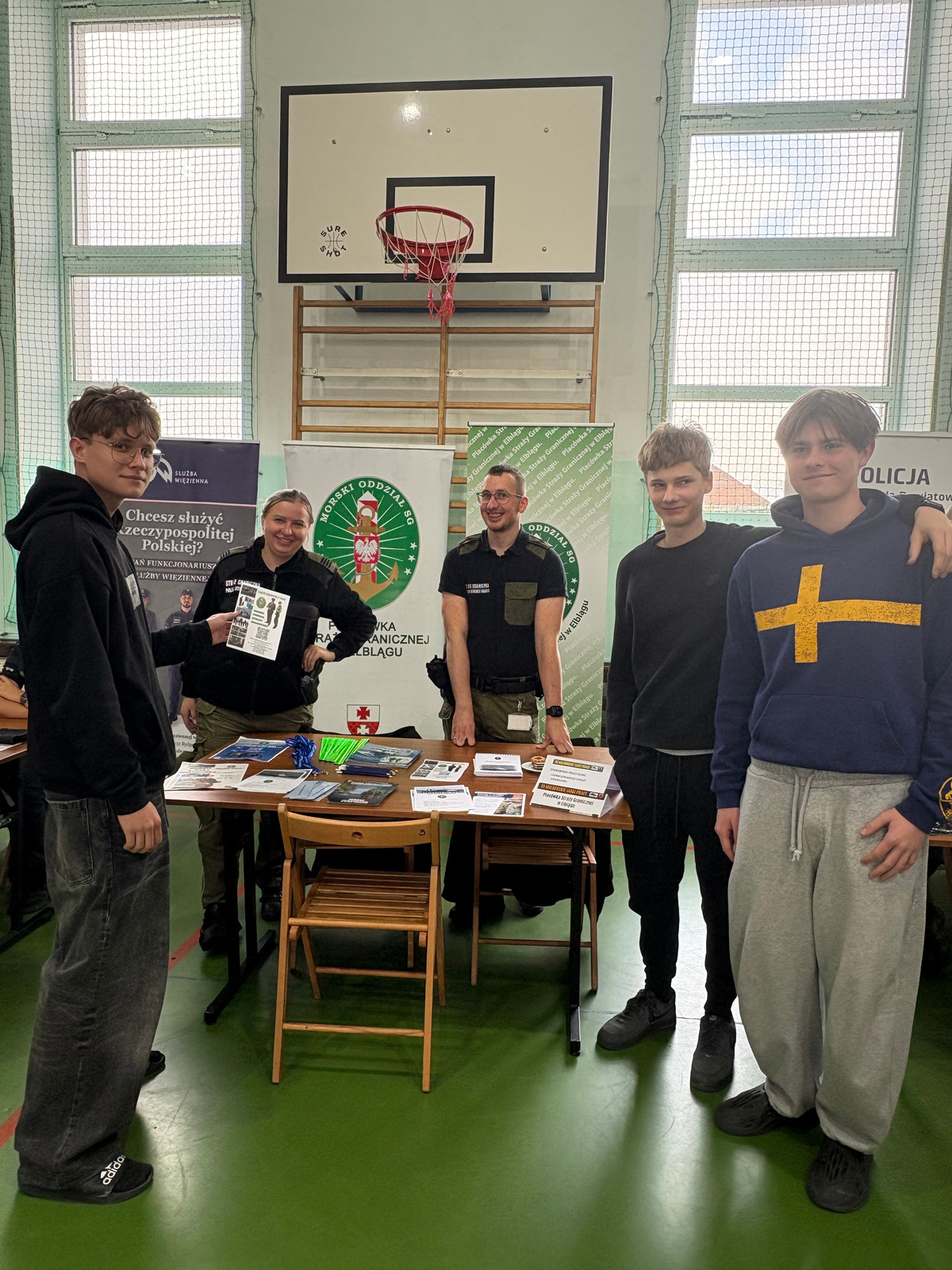 Mundurowi z Placówki SG w Elblągu uczestniczyli w wydarzeniu „Elbląg Ahead - Dzień Kariery i Rozwoju” w Zespole Szkół nr 1 w Elblągu. Uczniowie i absolwenci szkół średnich mogli zapoznać się z ofertą służby, zasadami rekrutacji oraz możliwościami rozwoju w formacji.