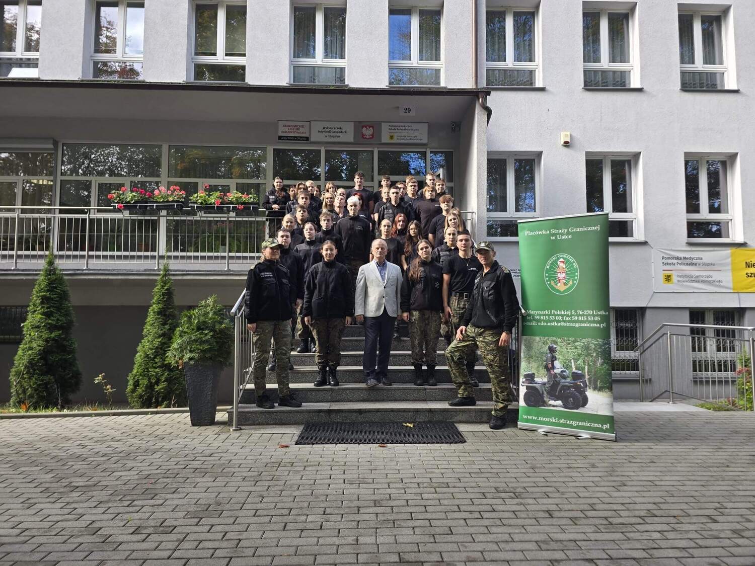 Następnego dnia funkcjonariusze PSG w Ustce odwiedzili uczniów Akademickiego Liceum Ogólnokształcącego przy WSIG w Słupsku. Podczas spotkania opowiedzieli o specyfice swojej pracy, służbie na granicach lądowych oraz morskich, a także o znaczeniu Straży Granicznej w systemie bezpieczeństwa państwa. Uczniowie mieli okazję dowiedzieć się, jak wygląda codzienna służba, jakie predyspozycje są potrzebne do pełnienia tak odpowiedzialnej roli w społeczeństwie oraz jakie możliwości rozwoju i awansu zawodowego czekają na funkcjonariuszy Straży Granicznej.