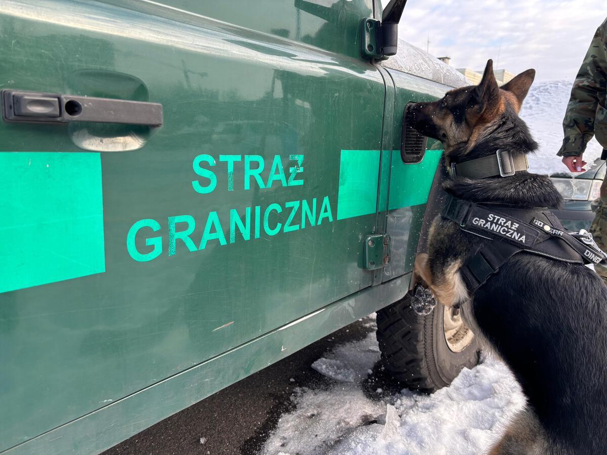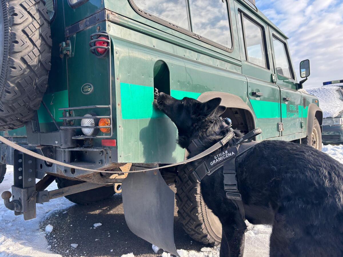 Pies służbowy SG podczas treningu węchowego. Fot. Krystian Kowalewski -
