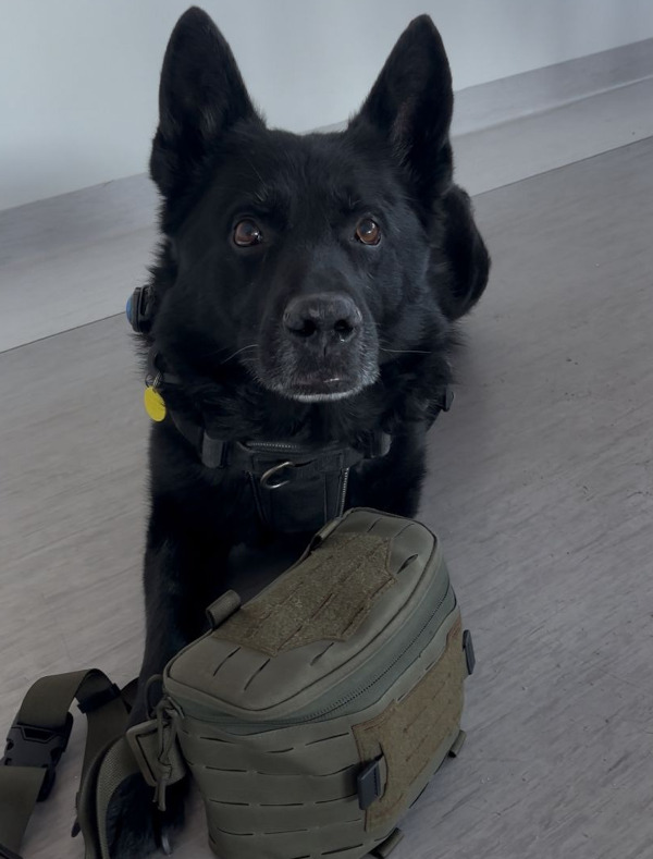 Pies służbowy SG przy apteczce do pierwszej pomocy. Fot. Krystian Kowalewski