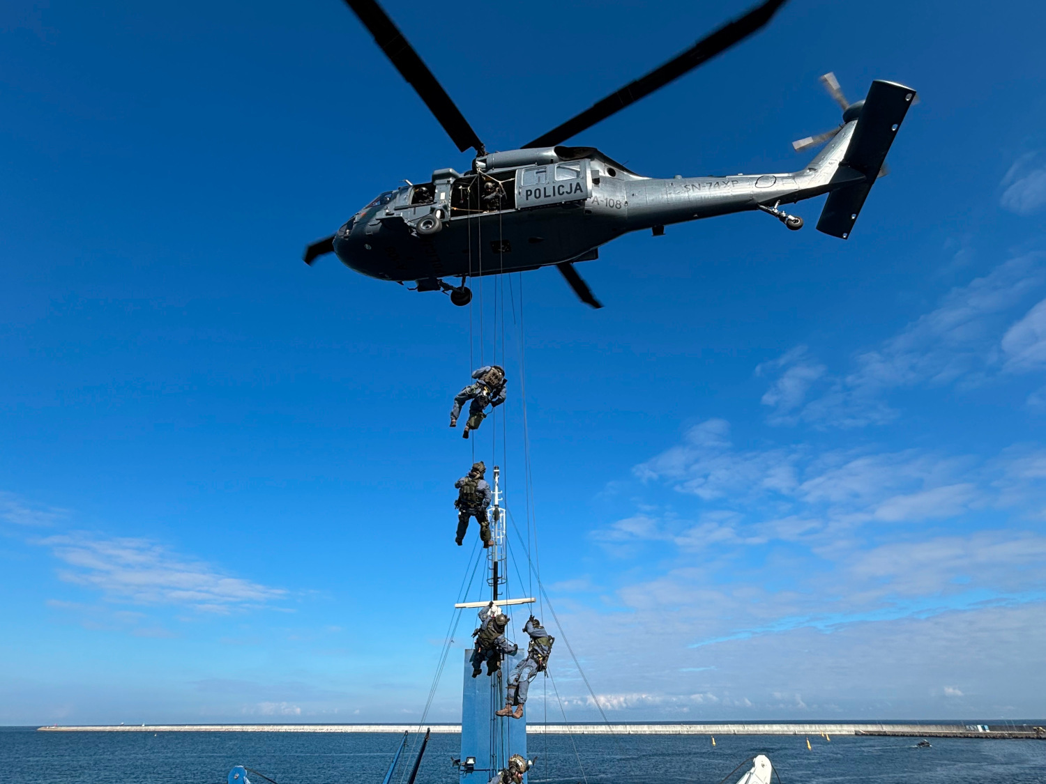Szkolenie obejmowało doskonalenie technik abordażu, czyli szturmu na jednostki pływające (w tym promy pasażerskie) i desantów ze śmigłowca Black Hawk.