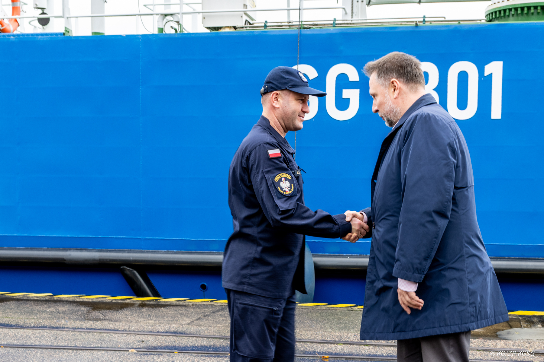 Komendant Główny Straży Granicznej doceniając zaangażowanie funkcjonariuszy pełniących służbę na morzu i sprawne kierowanie Kaszubskim Dywizjonem SG przez kmdr. ppor. SG Tomasza Kojtę, wręczył mu pamiątkowy ryngraf.