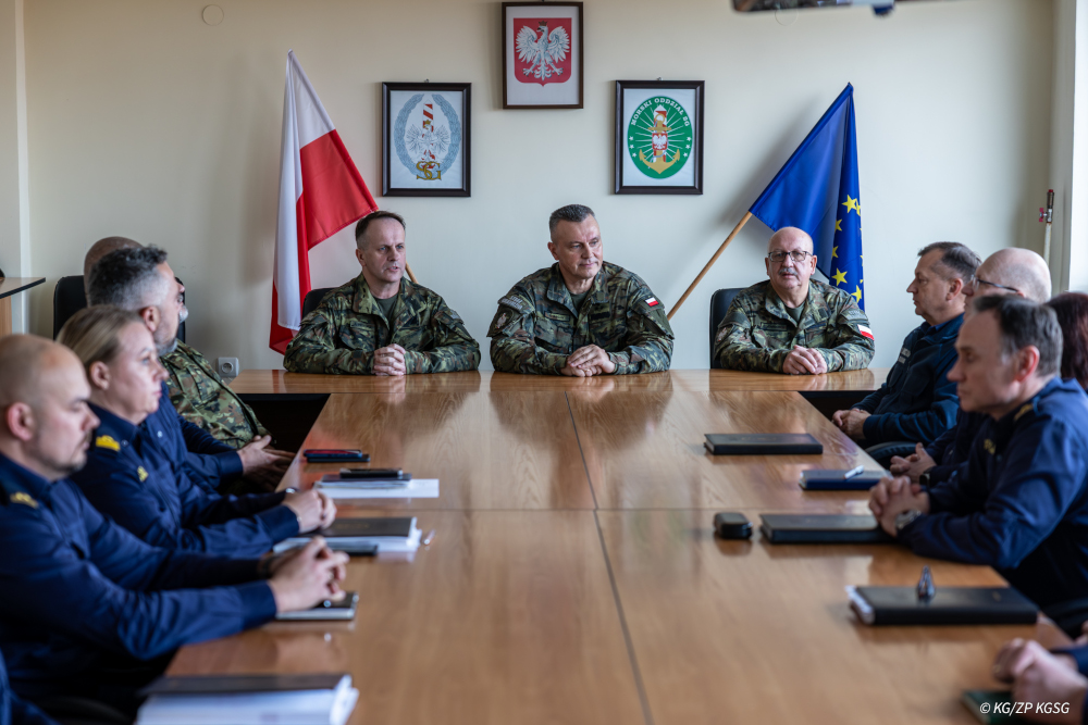 Obecni byli także: podsekretarz stanu w MSWiA Maciej Duszczyk, wybrani dyrektorzy departamentów MSWiA oraz Beata Rutkiewicz Wojewoda Pomorska. Komendant MOSG, tuż przed rozpoczęciem rozmów, wręczył ministrowi Marcinowi Kierwińskiemu, Wiceministrowi Maciejowi Duszczykowi i gen. dyw. SG Robertowi Baganowi miniatury bander RP.