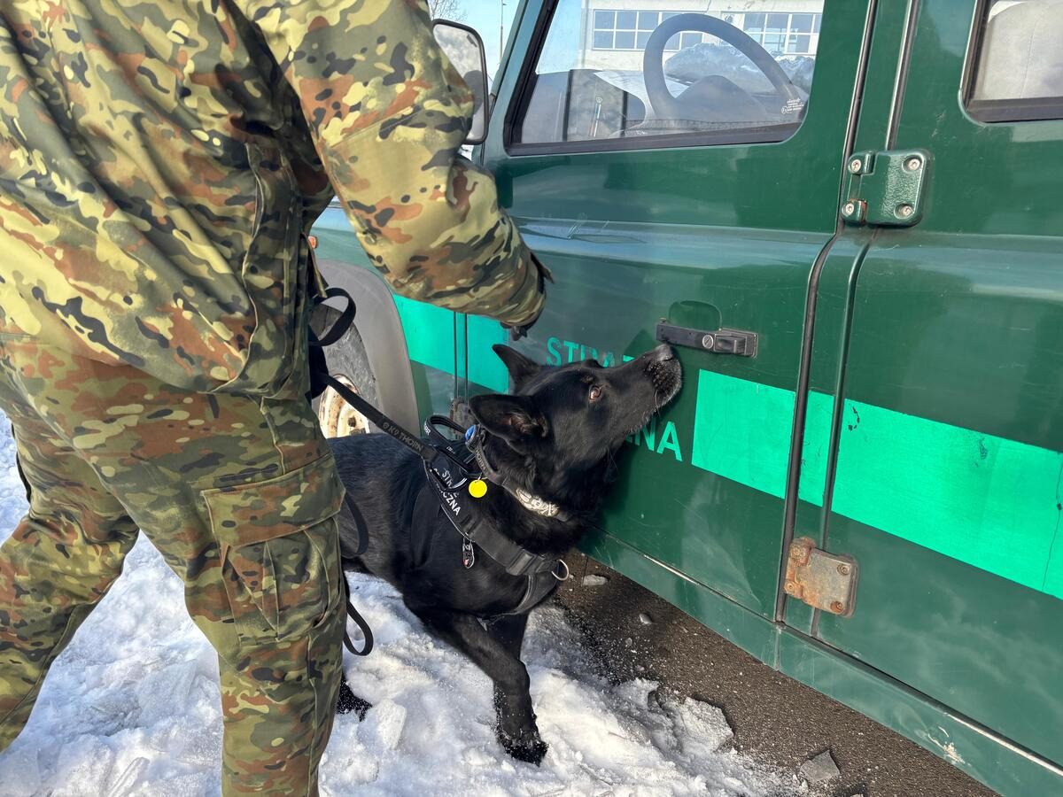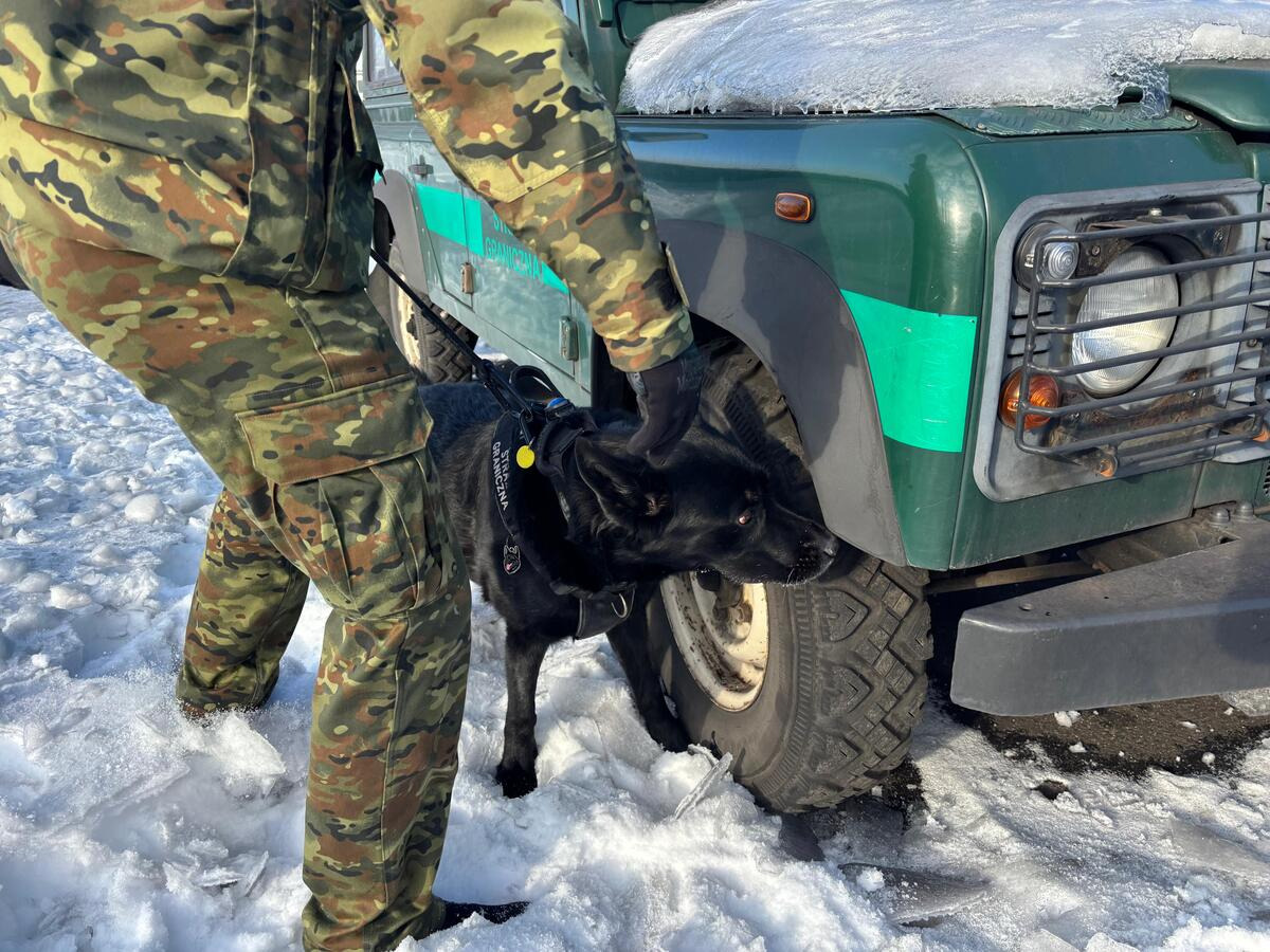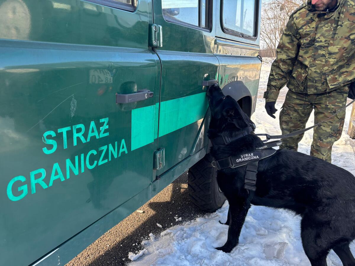 Pies służbowy SG podczas treningu węchowego. Fot. Krystian Kowalewski -
