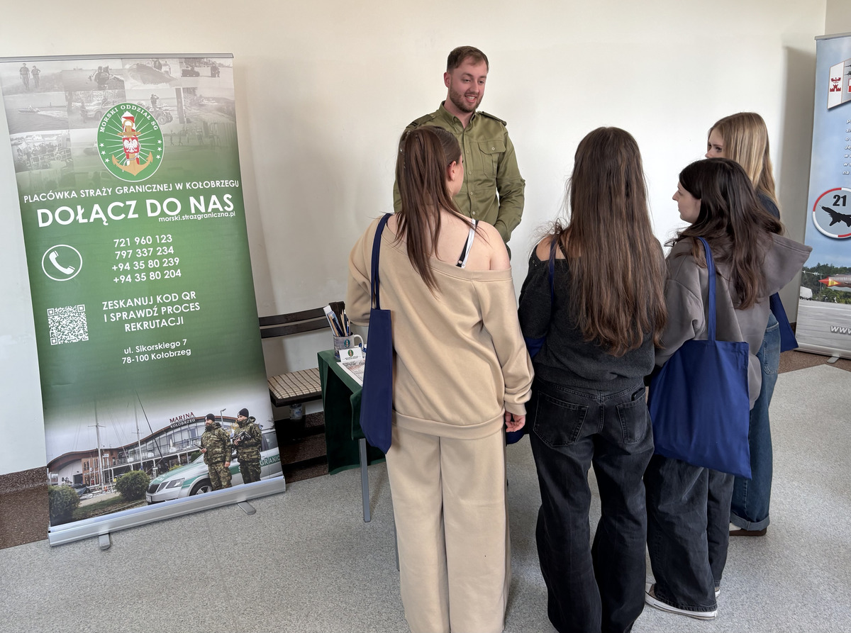 W działania promocyjne włączyli się także funkcjonariusze Placówki Straży Granicznej w Kołobrzegu. Spotkali się z młodzieżą z Zespołu Szkół im. Macieja Rataja w Gościnie, gdzie przedstawili proces naboru do służby przygotowawczej i kontraktowej, a także ofertę studiów w Wyższej Szkole Straży Granicznej w Koszalinie. Mundurowi uczestniczyli również w Targach Edukacyjnych w Zespole Szkół im. W. Broniewskiego w Świdwinie, w których udział wzięli uczniowie szkół średnich z powiatu świdwińskiego. W 2026 roku około 600 z nich zakończy edukację. Podczas wydarzenia omówiono specyfikę służby, ścieżki rozwoju zawodowego oraz warunki naboru do Straży Granicznej.