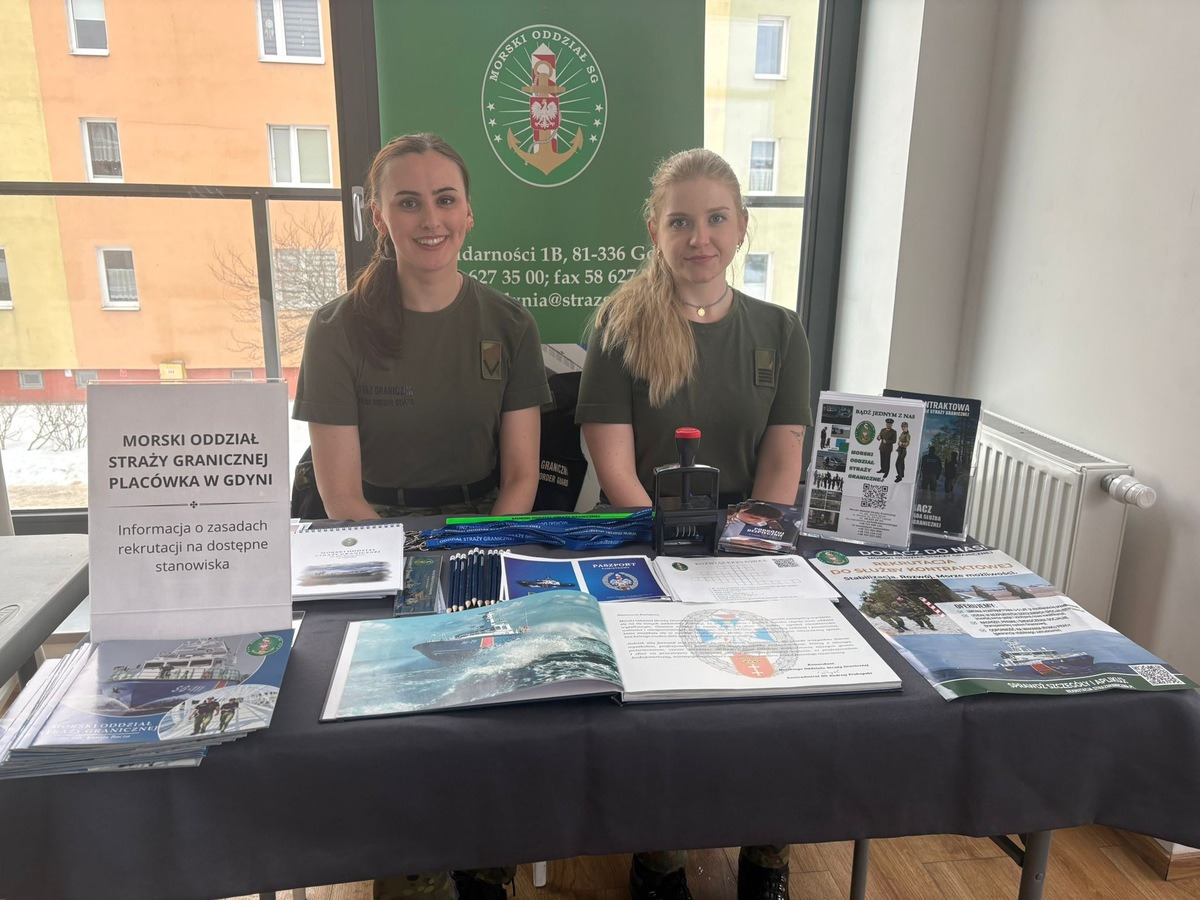 Funkcjonariuszki z Placówki Straży Granicznej w Gdyni wzięły udział w Dzielnicowych Targach Pracy w Gdyni oraz w Targach Pracy w Sopocie. Zainteresowani mogli dowiedzieć się, jak wygląda proces rekrutacji oraz jakie możliwości rozwoju oferuje służba w Straży Granicznej. Mundurowi spotkali się również z maturzystami Powiatowego Zespołu Szkół nr 1 w Kościerzynie, gdzie przedstawili zadania Straży Granicznej oraz zasady naboru do służby.
