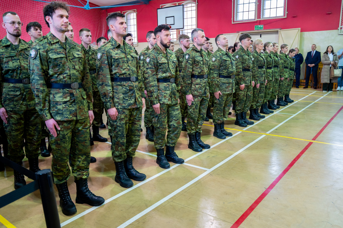 Komendant MOSG pogratulował nowicjuszom wyboru drogi zawodowej oraz podkreślił wagę wsparcia bliskich w ich codziennej służbie.
