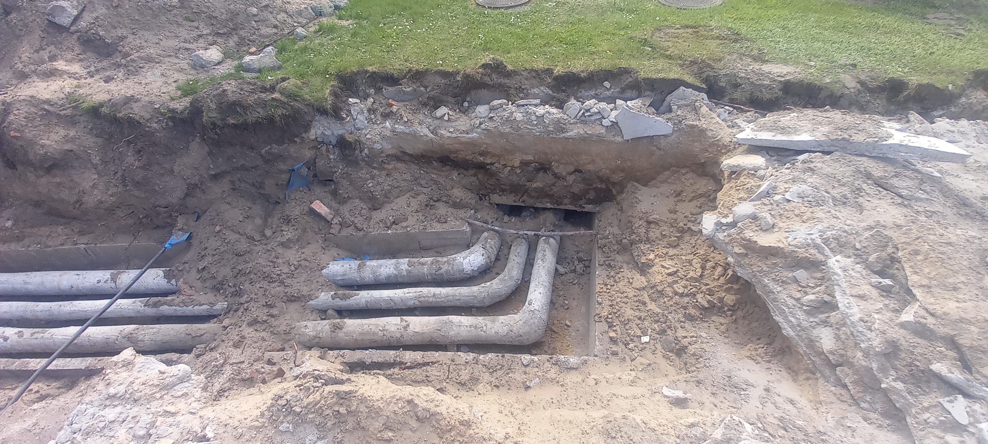 - Prace demontażowe: Demontaż istniejącej sieci (4 nitki x 17,0 mb) wraz z armaturą odcinającą (4 szt.) w budynku i komorze.
