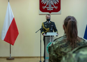 Kontradm. SG Andrzej Prokopski powitał nowo mianowanych strażników granicznych i pogratulował przyjęcia w szeregi formacji. Życzył im także satysfakcji w służbie oraz jak najlepszych wyników podczas szkolenia, które nowi funkcjonariusze przejdą, zanim trafią do jednostek organizacyjnych Morskiego Oddziału Straży Granicznej.