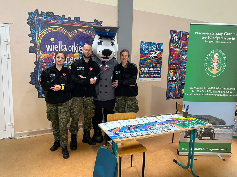 Jak Polska szeroka, od Krynicy Morskiej przy granicy z Federacją Rosyjską, aż po Szczecin i Świnoujście przy granicy z Niemcami funkcjonariusze z Komendy MOSG oraz niemal z wszystkich jednostek organizacyjnych włączyli się w 33. finał Wielkiej Orkiestry Świątecznej Pomocy, która grała dla onkologii i hematologii dziecięcej. We wszystkich tych miejscach funkcjonariusze wystawili stoiska promocyjne, rozdawali różne pamiątki, a zainteresowanym udzielali szczegółowych informacji o naborze do służby w Morskim Oddziale Straży Granicznej. W gdańskim finale WOŚP zorganizowanym przy Europejskim Centrum Solidarności hymn WOŚP grała Orkiestra Morskiego Oddziału Straży Granicznej.