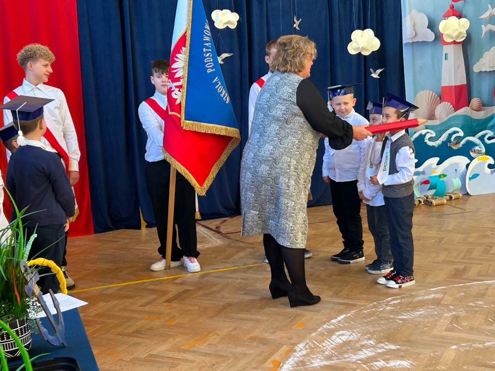 Pasowanie pierwszoklasisty na ucznia to uroczystość, podczas której dzieci rozpoczynające swoją edukację w szkole podstawowej formalnie stają się uczniami. To ważny moment w życiu młodych ludzi, często symbolizowany przez wręczenie dyplomów lub pasowanie na ucznia przez nauczyciela, które może odbywać się w obecności rodziców i innych społeczności szkolnej. W tym wydarzeniu nie mogło zabraknąć strażników granicznych. To bowiem szkoła nosząca imię Morskiego Oddziału Straży Granicznej.