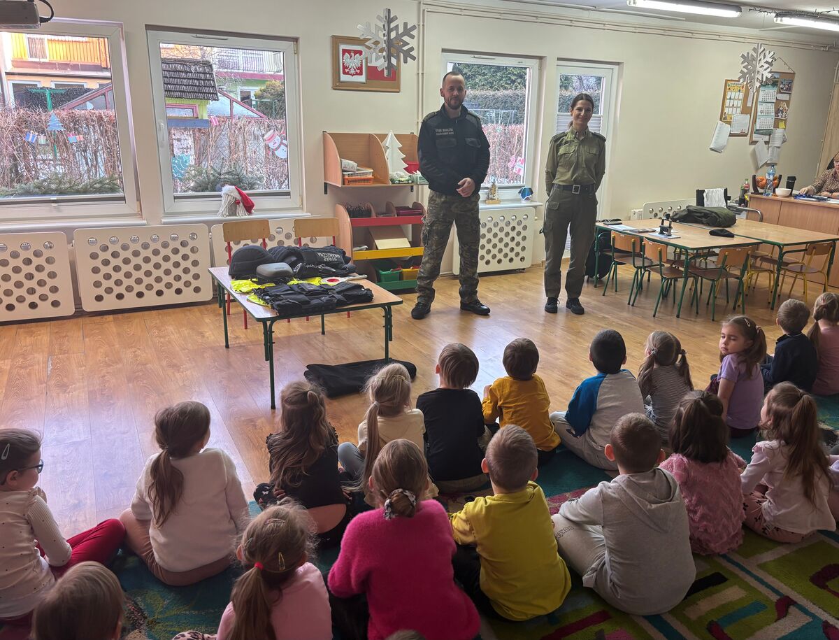 Funkcjonariusze PSG w Kołobrzegu spotkali się również z wychowankami Przedszkola nr 20 w Koszalinie. Dzieci mogły zobaczyć sprzęt służbowy, przymierzyć kamizelkę kuloodporną i kajdanki oraz obejrzeć pojazd służbowy typu więźniarka. Przedszkolaki zadawały wiele pytań dotyczących służby. Na pamiątkę spotkania każde dziecko otrzymało odbitkę stempla do pamiątkowego paszportu.