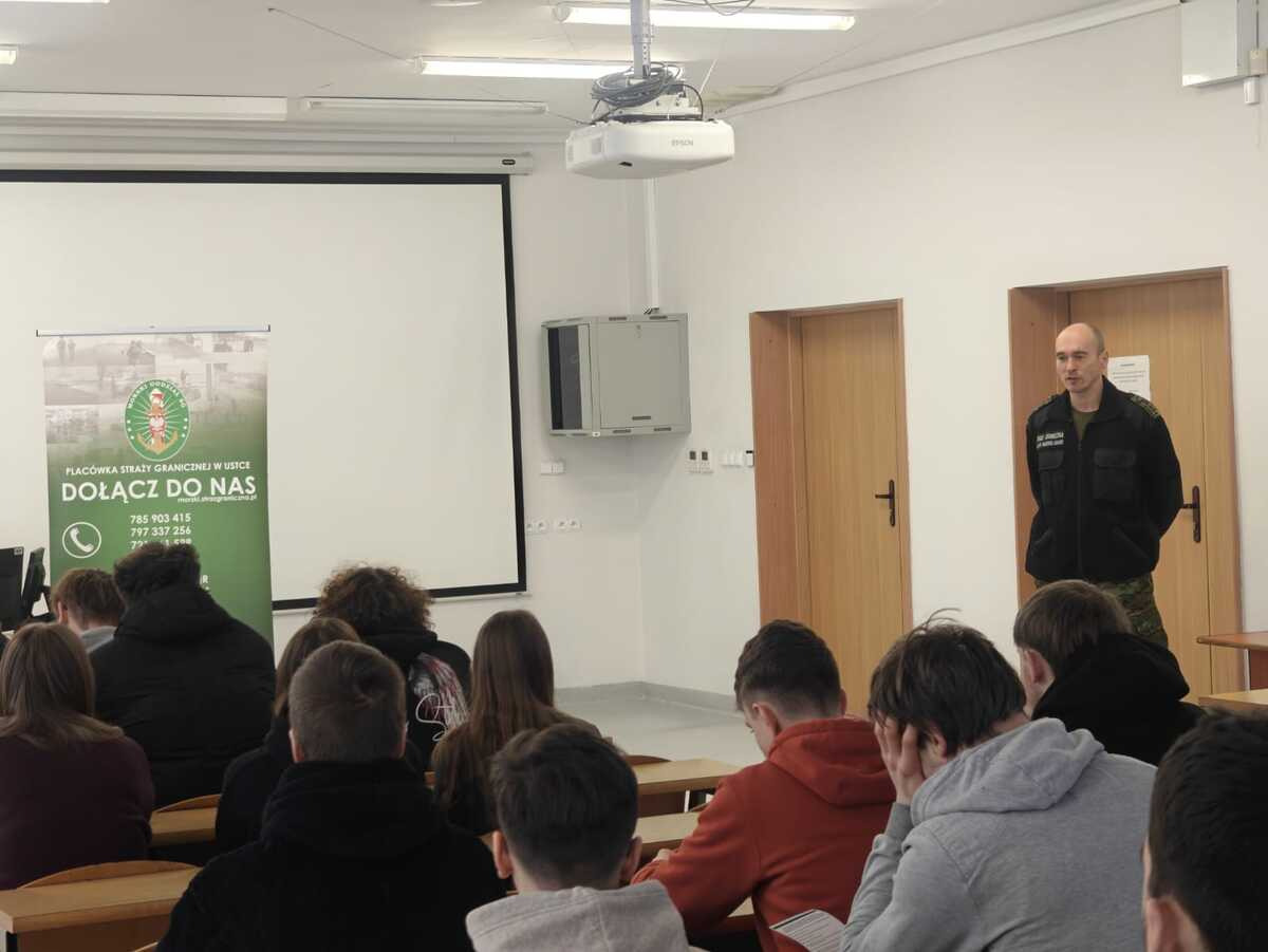 Strażnicy graniczni z Placówki Straży Granicznej w Kołobrzegu odwiedzili młodzież z Zespołu Szkół nr 2 im. Bolesława III Krzywoustego. Celem spotkania było przedstawienie oferty służby kontraktowej w MOSG. Funkcjonariusze omówili specyfikę służby na lądzie i morzu, ustawowe zadania Straży Granicznej oraz zaprezentowali wykorzystywany sprzęt. Omówiono także proces rekrutacji oraz możliwości rozwoju w formacji.