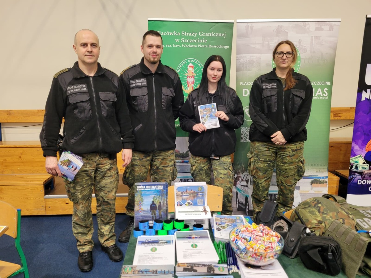W działania promocyjne włączyli się także funkcjonariusze Placówki Straży Granicznej w Kołobrzegu. Spotkali się z młodzieżą z Zespołu Szkół im. Macieja Rataja w Gościnie, gdzie przedstawili proces naboru do służby przygotowawczej i kontraktowej, a także ofertę studiów w Wyższej Szkole Straży Granicznej w Koszalinie. Mundurowi uczestniczyli również w Targach Edukacyjnych w Zespole Szkół im. W. Broniewskiego w Świdwinie, w których udział wzięli uczniowie szkół średnich z powiatu świdwińskiego. W 2026 roku około 600 z nich zakończy edukację. Podczas wydarzenia omówiono specyfikę służby, ścieżki rozwoju zawodowego oraz warunki naboru do Straży Granicznej.