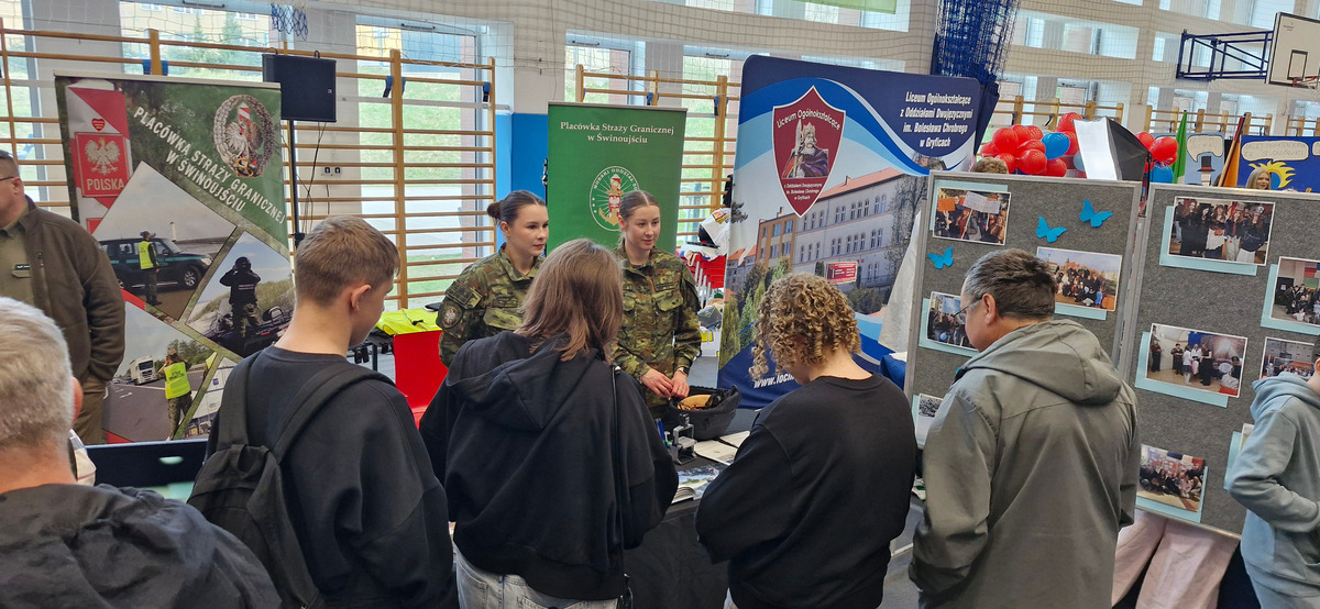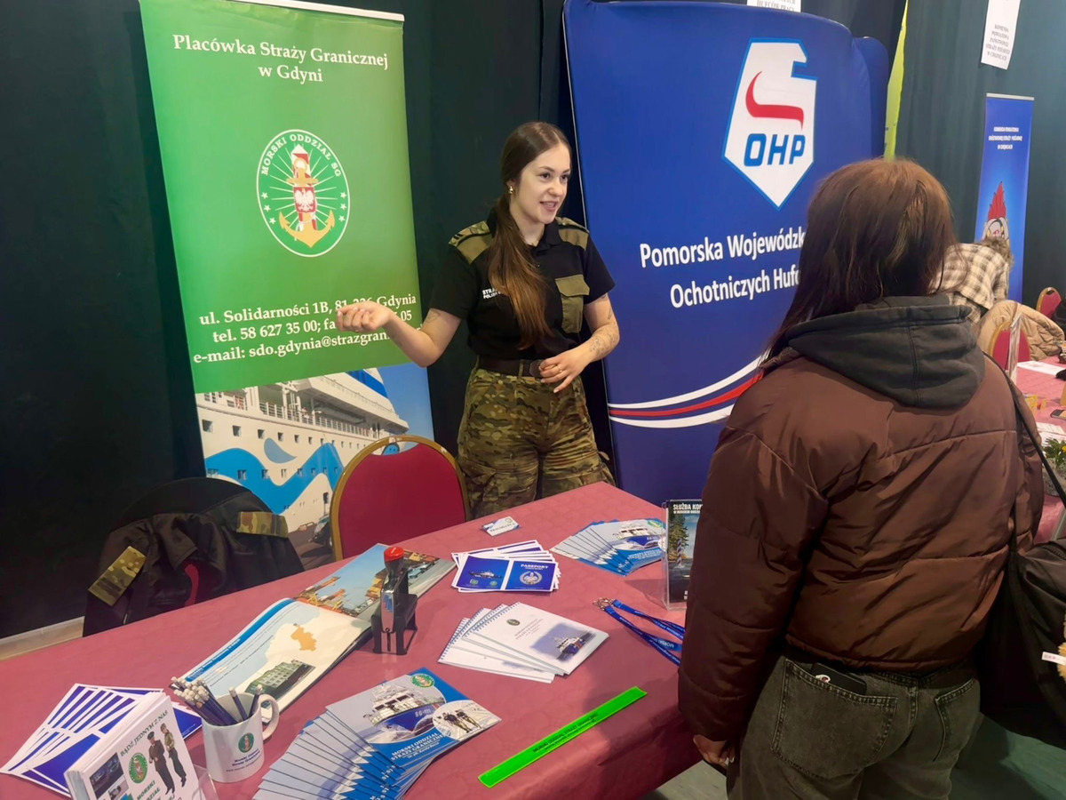 Strażnicy graniczni z Placówek SG w Świnoujściu i Ustce uczestniczyli także w targach edukacyjnych, gdzie informowali o procedurze kwalifikacyjnej oraz etapach naboru. Przedstawili również ofertę edukacyjną Wyższej Szkoły Straży Granicznej w Koszalinie. Stoiska SG cieszyły się dużym zainteresowaniem, a uczestnicy mogli z bliska zapoznać się z wyposażeniem funkcjonariuszy.