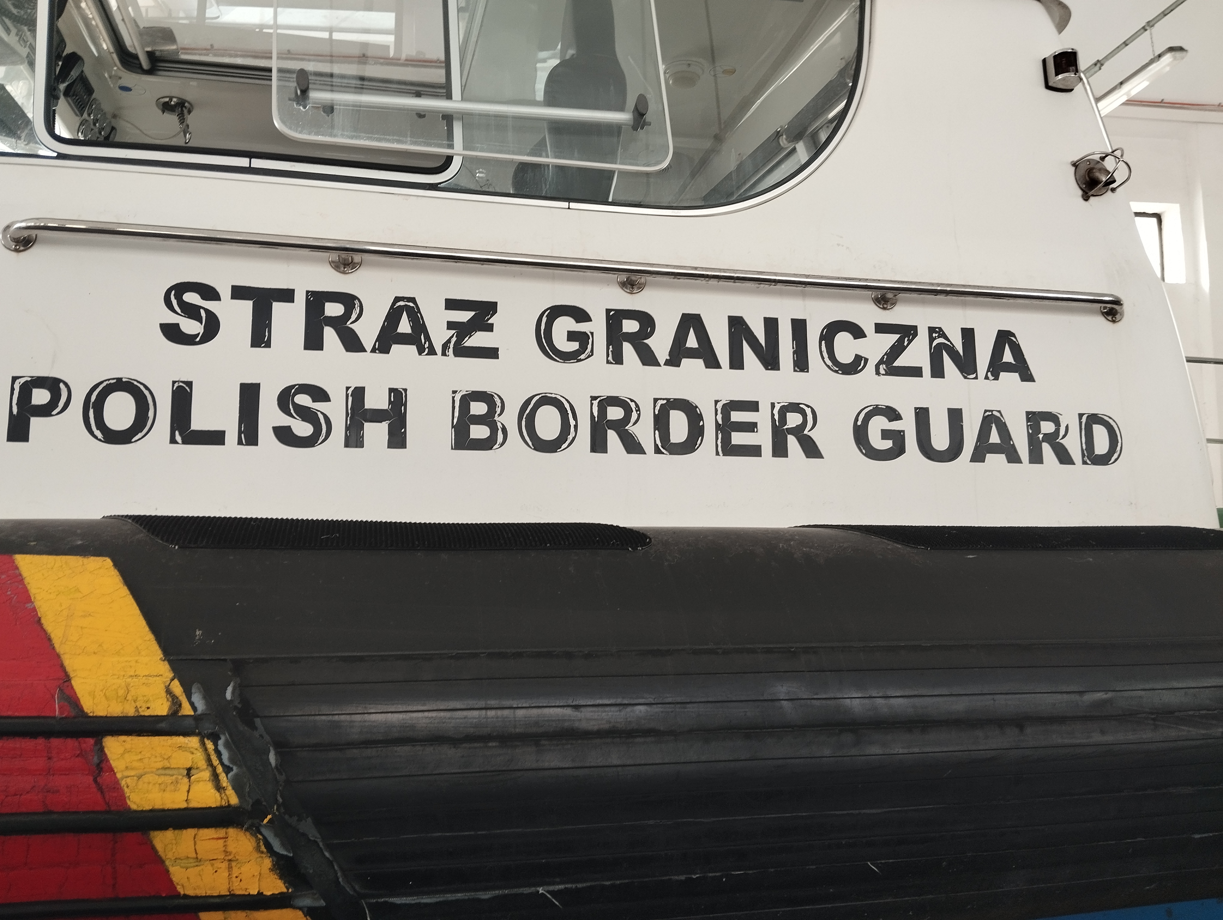 - napis czarny „ POLISH BORDER GUARD ” szerokość napisu około 1970 mm, wysokość liter 110 mm, szerokość liter 110 mm (2 szt. na SG-044 i 2szt. na SG-047 ).