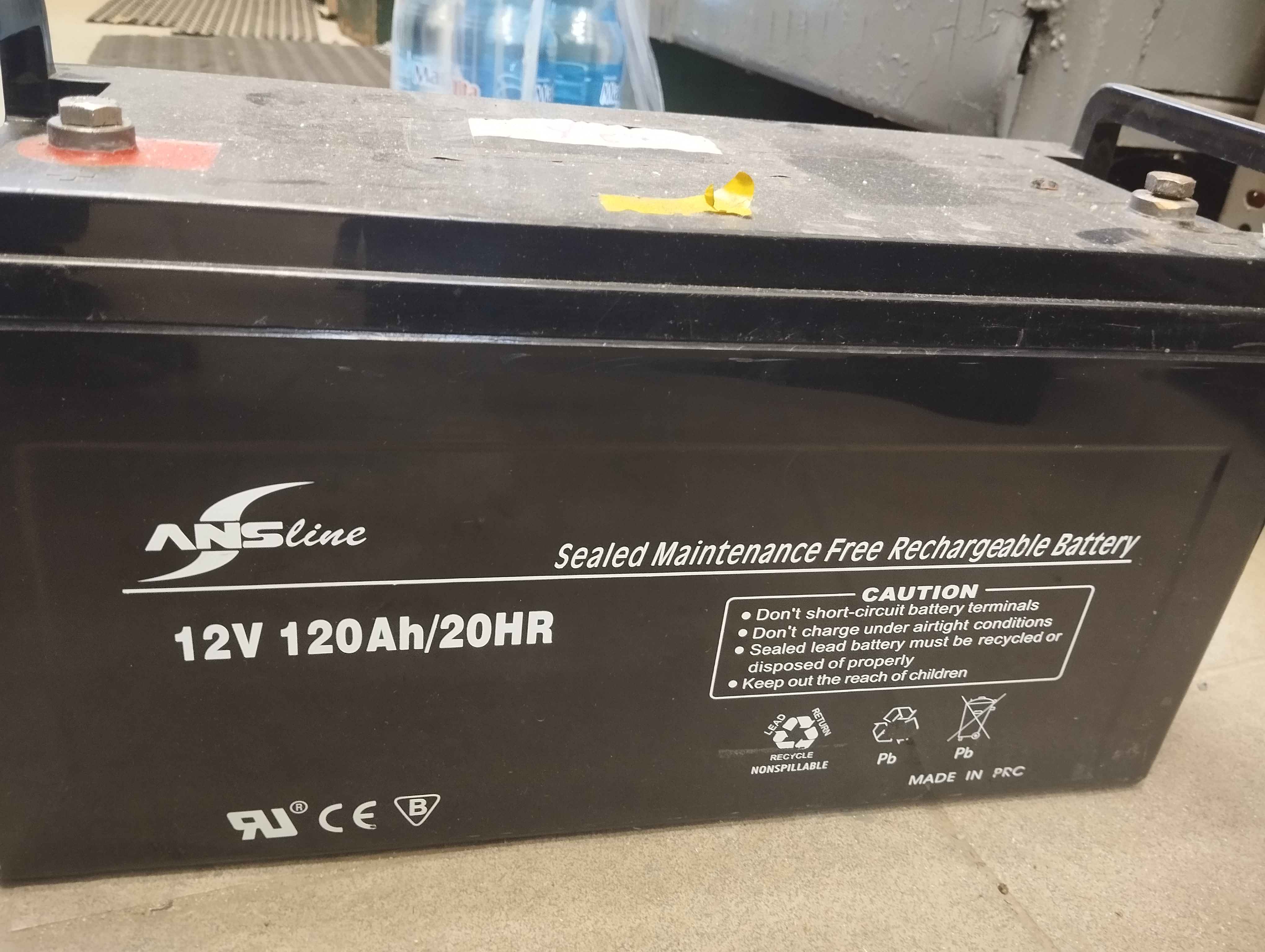 1) Akumulator 12V i 120 Ah z wkręcanymi biegunami o wymiarach 40 cm długości, 16,5 cm szerokości i 21cm wysokości.