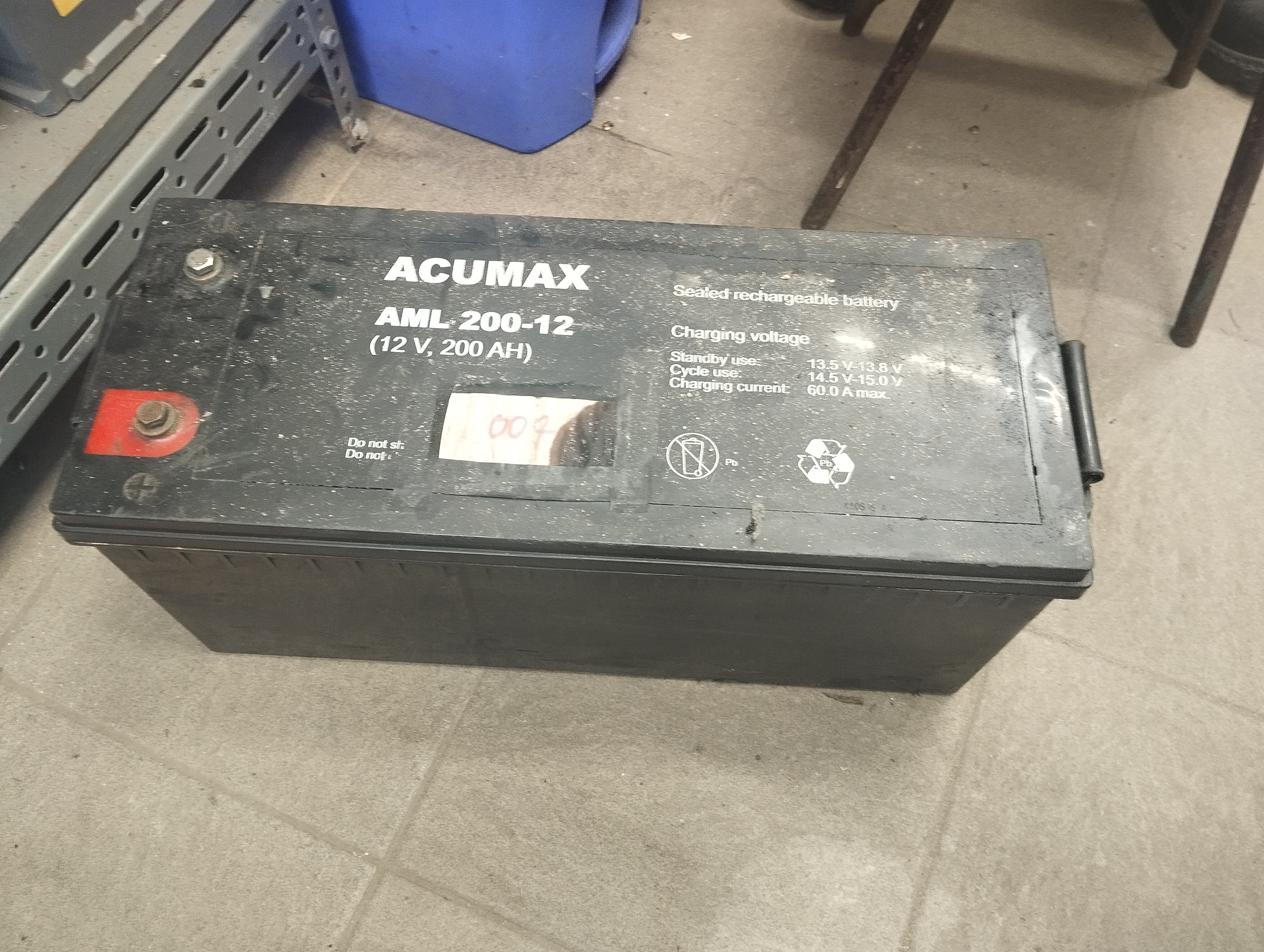2) Akumulator 12V i 200Ah z wkręcanymi biegunami o wymiarach 50 cm długości 20cm szerokości i 21 cm wysokości.